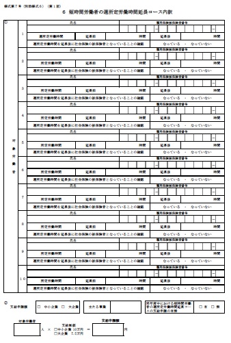 という上にご紹介している様式第7号(別添様式6)(第1面)6短時間労働者の週所定労働時間延長コース内訳に記入していきます。